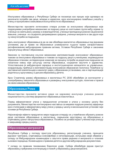 Dva teksta objavljena na portalu detaljno su objasnila prednosti inkluzivnog sistema, metode podrške deci sa teškoćama i načine prevazilaženja predrasuda. Uz ovo, distribuirano je 400 edukativnih brošura za zainteresovane institucije, roditelje i nastavnike, dok su svi materijali ostali dostupni online.