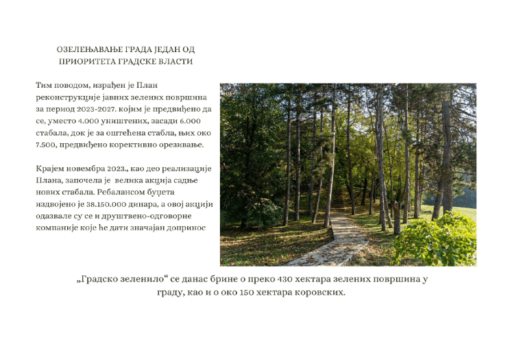 Građani će kroz brošure saznati praktične savete za očuvanje zelenila: od gajenja korisnog bilja na balkonima do učestvovanja u akcijama sadnje drveća.